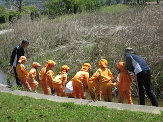 場所は、口之津の開田公園。そこには、メダカやザリガニが生息しているので・・・何だか、張り切ってます!