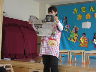 今月の出し物は新聞紙シアター(^^♪