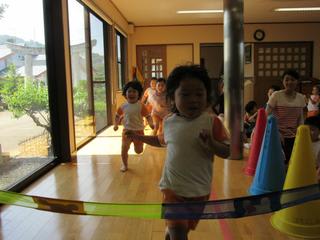 支援センターを使って、入場行進から準備体操、かけっこ・・・と進んでいきました。