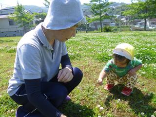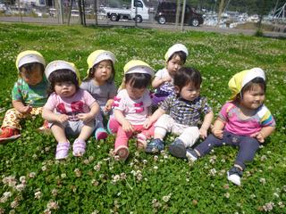 「ねぇ、見てみて!!足がつくとよ」と自慢げに教えてくれた男の子 少しずつ身長も伸びて嬉しいようです 足元で何かを発見!! ジ~っと見つめる視線の先には・・・ 小さな‘あり’でした 一方、運動場では1、2歳児が遊んでいまし…