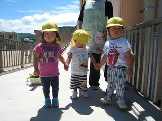 さて、1歳児さん、2歳児さん手を繋いでどこへ行くのかな?
