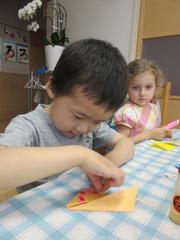 4歳児さんはかたつむりを見ながら制作がスタート。