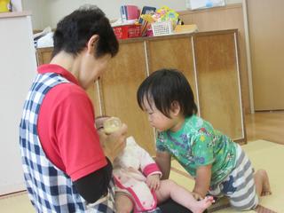 大好きな製作はそっちのけ あかちゃんあかちゃんと飲んでしまうのを見守ってくれていました