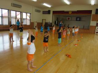 これまでは保育園で練習していましたが、本番の体育館を想定し、広い場所での練習へうつります。