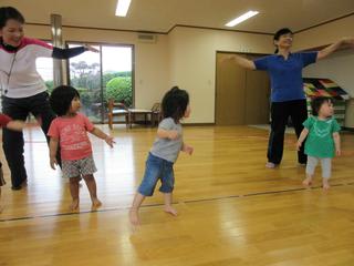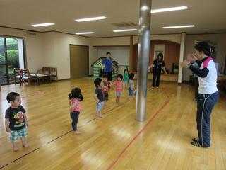 1~2歳児さんたちも、ご覧のように音楽に合せ、身体を気持ちよく動かしていました