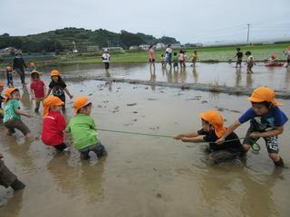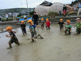 あっという間に田んぼにも慣れて走り回る4・5歳児さん。