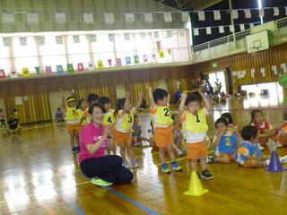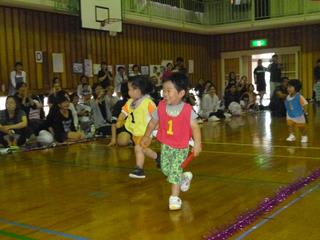 毎年白熱の全員リレー。今年も2歳児さんから5歳児へバトンをつなぎました。