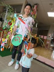 できたての七夕飾りを持ってハイ・ポーズ上手にできましたね~