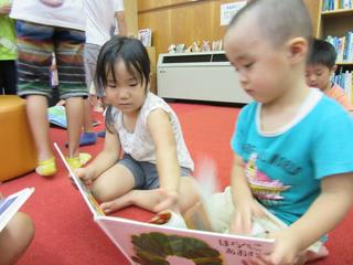 読み聞かせの後は好きな絵本を手に取り・・・