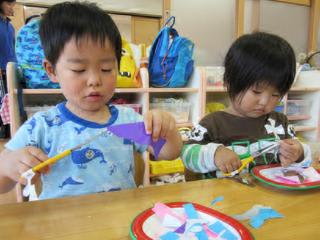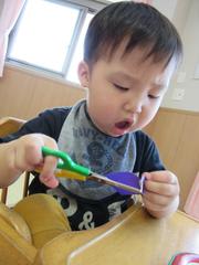 折り紙とはさみを両手に持って、真剣な感じですよ~