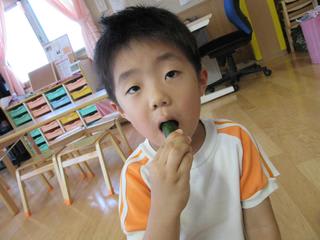 収穫したきゅうりをがぶりっ!!