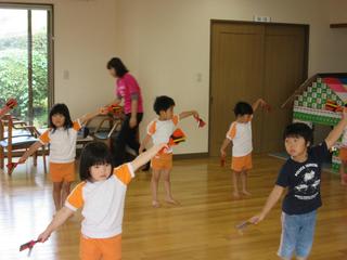 当法人の夏まつりに向けて、子どもたちは鳴子を持って練習中(^^♪