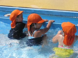 カニ歩きでプールの壁を渡ってきます(^^♪