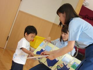 朝から涼しい風が吹く1日となりました。 今日は、元気な男の子5人のホリデーです。 午前中は室内で遊んで、昼食を食べるためにテーブル拭き(^^♪ 1歳児さんがやってくれました☆ そして5歳児さんが、1歳児さんにエプロンをつ…