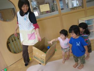 0歳児さんもコロコロ動くボールを追いかけたり、目を輝かせて遊んで過ごしました