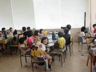 到着して、恐竜の絵のプラバン作りを楽しんだご一行。