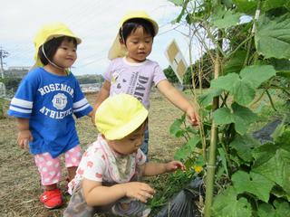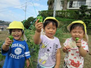「採れたよ」と2歳児さん