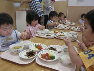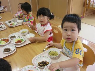 おいしいね~と言いながら食事を楽しんでいた0・1歳児さんの様子でした。