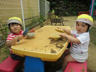 昨日はとてもよい天気だったのに、今日は雨がふって止みません。 外では遊べないので、室内で製作。 新聞紙を使って・・・言われても何が何だか??のお子様もいます。 かぶとの出来上がり!良く似合いますね。 今日のメニューは、お…