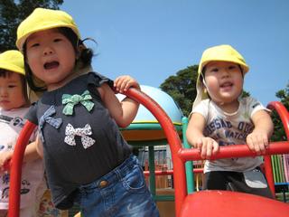 元気な声をあげて大好きな園庭へ出てきました