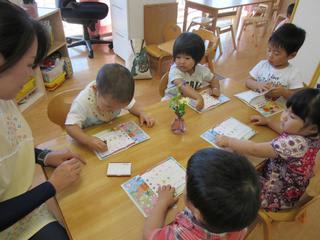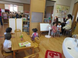 保育士が絵本や紙芝居を持ってくると、「今日は何のおはなし?」と目を輝かせます。子ども達が大好きな時間ですね。 先日の延長保育時、私たちに「リベンジするね!」と言いながら語られ始めたのは『おじいちゃんの ごくらく ごくらく…