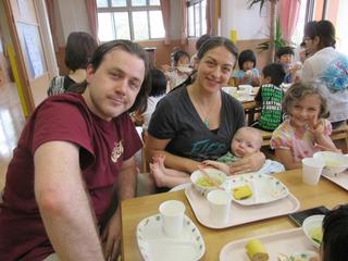 サラダや果物、お汁を加えてみんなで「いただきまーす」(^^)