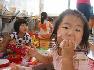 さて、次はお待ちかねの昼食タイム。愛情の詰まった手作り弁当を頬張る子どもたち❢