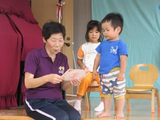 4歳児が2回に分かれて世代間交流をしました。1回目は、まずご挨拶・・・ 一緒にダンスを踊りましたよ。 夏越祭の神事の後に記念撮影。とても暑い日差しでしたね。 その後は、一緒にそうめん流し。 本物の竹を長くつないで、作られ…