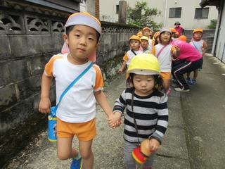 1歳児さんから5歳児さんまで一緒にお散歩へ出かけました(^^)