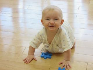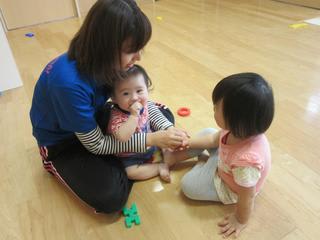 もう一回もう一回と楽しんでる1歳児さんの前には、ニコニコカメラ目線の0歳児さん