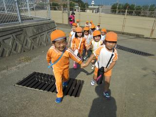 手を繋いで怪我のないように上のクラスのお友だちが