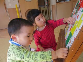 二人仲良く、ボードに色々な形を貼り付けていきました。