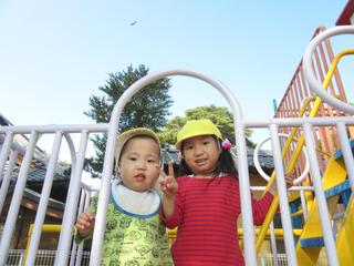 園庭の遊具でハイポーズ❢笑顔がステキですね