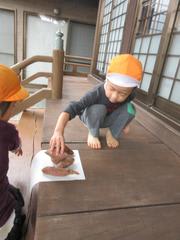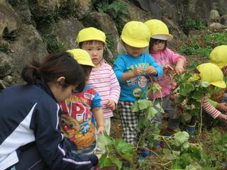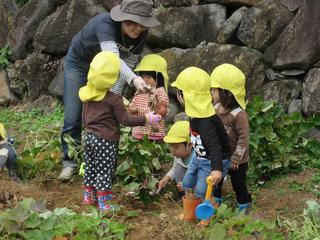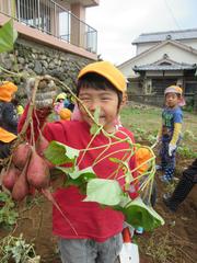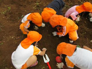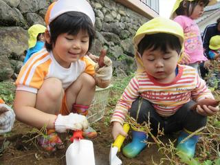 そして、写真にはありませんでしたが、0歳児さんは、テラスから応援してくれる賑やかさの中、今日はみんなでお芋掘りをしました。