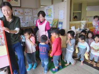 今日は節分集会が行われました。 ペープサートでは、節分に必要な「いわし」「ひいらぎ」「まめ」がアイテムとして登場! 今日は土曜日でもあり、支援センター利用の小学生も一緒に盛り上げてくれる頼もしさでした! 「鬼のパンツ♪」…