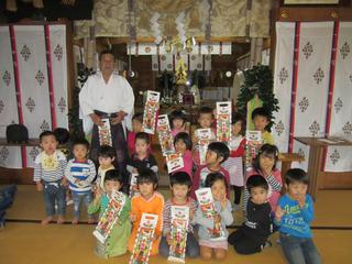 手作り凧を持って、園庭へ。 ♪た~こ た~こ あ~がれ♪ 風を受けて、空に舞い上がっていました(^^♪ 走り回ったこともあり、体はポカポカ(^^) 「あがったよー!!」と大喜びの子どもたちでした。