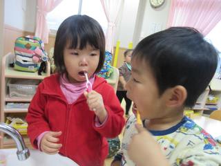食事が済んだら歯を磨きしましょうねごしごし