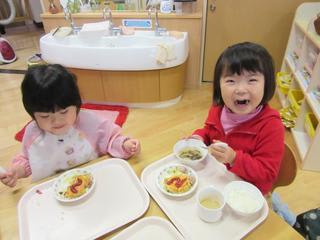 昼食は一緒のテーブルで仲良く