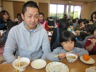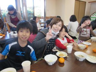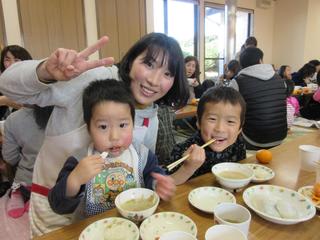 お母さん方が作って下さった豚汁、そしてみんなでついたおもちをいただきました(^^♪