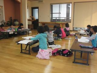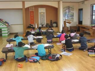 支援センターを利用する小学生たちは、さっそく長机を設置して宿題に取り掛かりました。