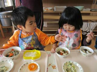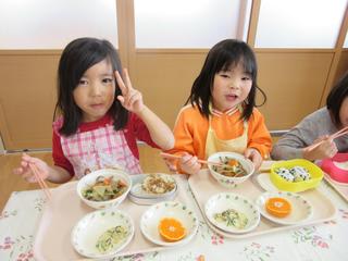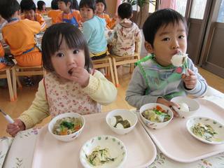 一番季節の良い5月に生まれた子どもたち。待ちに待った喜びの誕生でしたね。 ペープサートでのお話。「これは何?かな?」の問いに、元気な声で答えていました。 10日の誕生食は、グリンピースご飯にコロッケやスパゲテイが付いてい…