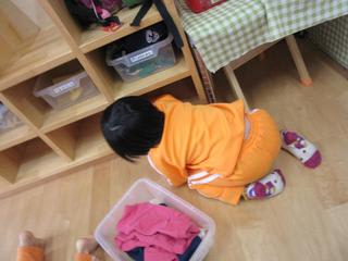 小さなボールや大きなボールをコロコロ~と転がすと 0歳児さんは これなんだろう?と手に持って確認したり、蹴ってみたり。 1歳児さんの姿を見て、真似する姿がたくさん見られました