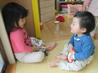 月齢も高くなり、子どもたち同士での会話や関わりが増えて盛り上がってますよ