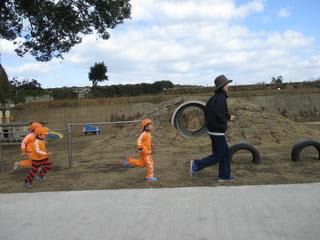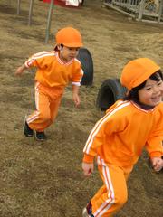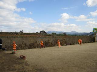 運動場のほうから、きれいに並んで走ってくるお友だち(^^♪