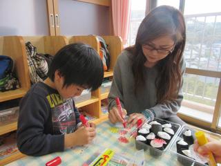 昨日、3,4歳児さんがデイサービスの利用者さん達と一緒に鬼のお面作りをしました 鬼のイラストにクレヨンや色鉛筆で色塗りです。 ん~… 何色使おうかなー(^^♪ ぼく終わったから、お手伝うよ! と、男の子 お…