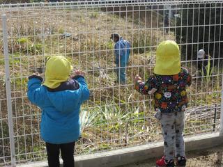 先日、園庭に出たら、近くの畑でサトウキビの収穫をされていました。