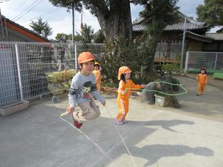 「ぴょんぴょん」とリズミカルに跳ぶ4、5歳児さん。
