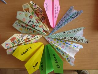 保育室ではみんなの紙飛行機のメッセージを一枚一枚丁寧に読んでいた彼。