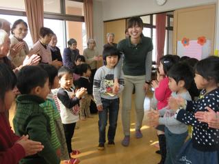 デイサービスの利用者も来てくださり、担任の先生と共に笑顔で入場してお祝いの会スタートです!