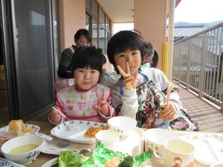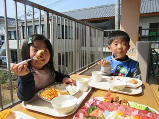 今日もいいお天気になりましたね こんな日は… テラスで昼食 ポカポカ陽気で子どもたちも気持ちよさそうでしたよ 明日からこの天気も下り坂みたいですね 子どもたちもポカポカ陽気の春が待ち遠しいかもしれませんね